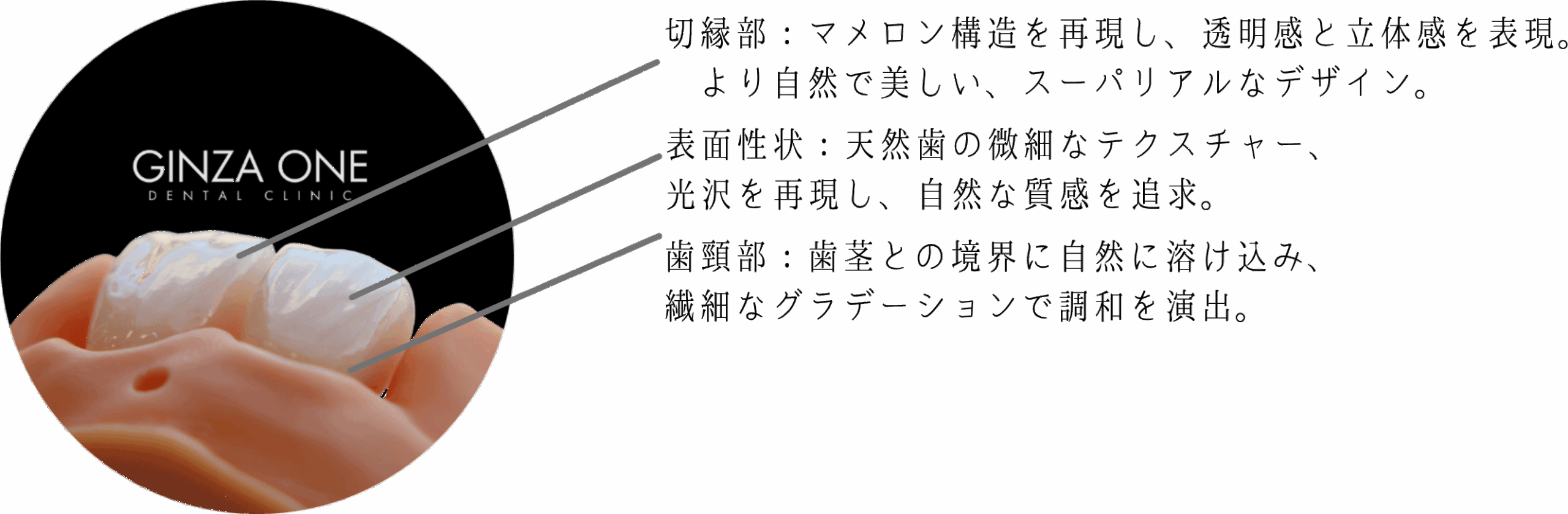 銀座ONE式ラミネートベニアは、歯の表面に極薄のセラミックシェルを貼り付ける審美歯科治療で、